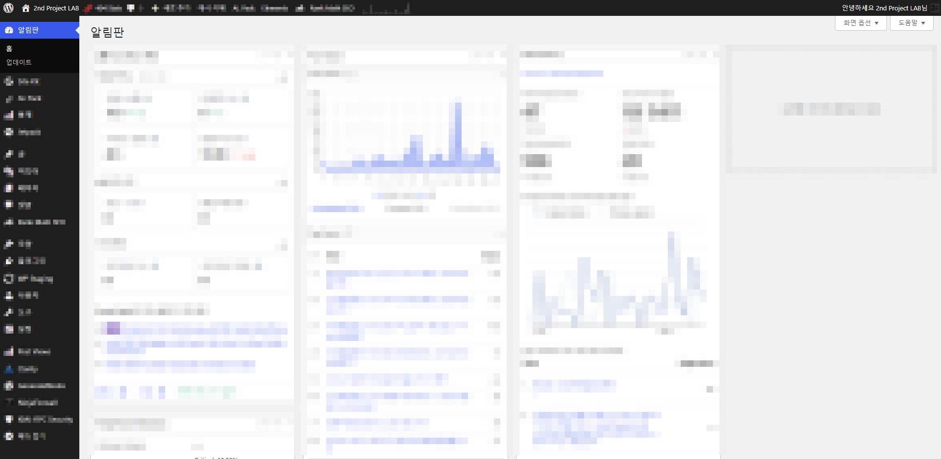 워드프레스를 설치하고 관리자에 로그인을 하면, 처음 보는 복잡한 화면이 화면을 꽉 채웁니다.